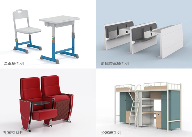 20年植根于教育市場(chǎng),專業(yè)研發(fā)學(xué)校辦公家具、學(xué)生課桌椅、禮堂椅、公寓床、影院椅等,涵蓋10大品類,5000款單品。